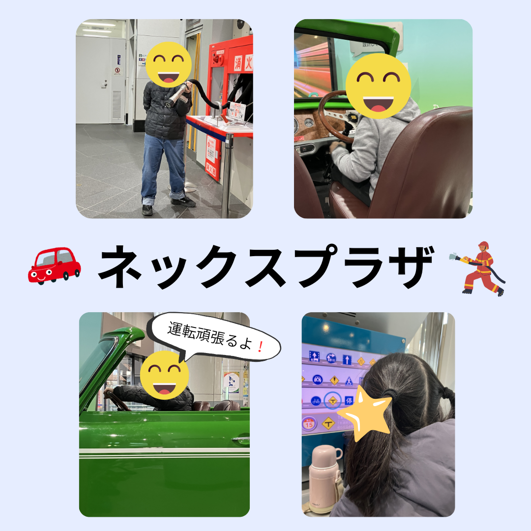2026年2月20日 / 最終更新日時 : 2026年2月20日 yeep 活動記録 【ネックスプラザへ🚗】 こんにちは! イープ放課後デイです♪ ネックスプラザへ出かけました! 消火器の展示品に触れて、消防士さんごっこをして楽しみました🧯✨ 標識クイズではなんと全問正解!👏 「これ知ってるよ!」と自信たっぷりに答えていました😊 コメントを残す コメントをキャンセルメールアドレスが公開されることはありません。 ※ が付いている欄は必須項目ですコメント ※ 名前 ※ メール ※ サイト Δ