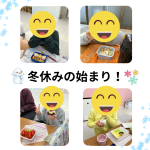2025年12月25日 / 最終更新日時 : 2025年12月25日 yeep 活動記録 【ワクワク冬休みスタート⛄】 こんにちは! イープ放課後デイです♪ 冬休みが始まりました🎅🎵 お友達と一緒にお弁当を食べながら にぎやかで楽しいランチタイムを過ごしました🍙❣ 明日のクリスマス会も楽しみだね🎄
