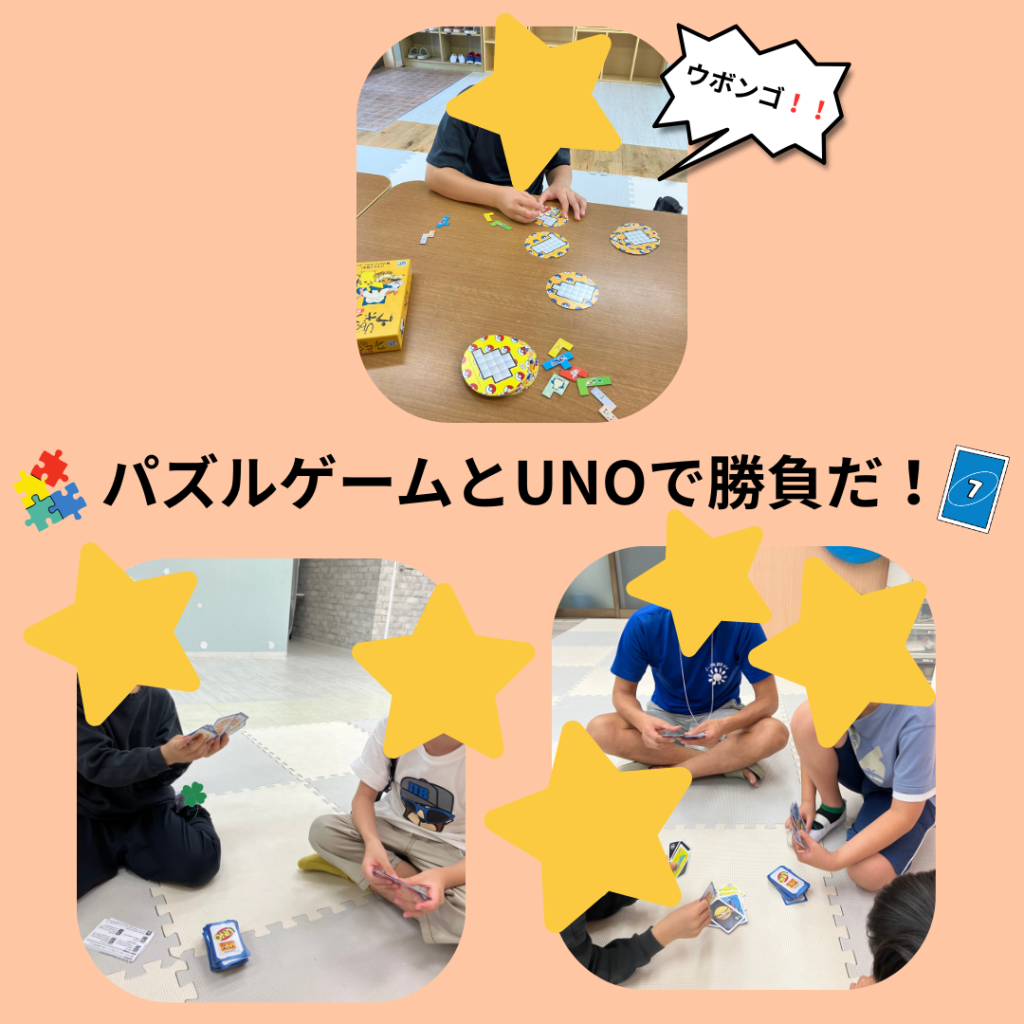 みんなで「ウボンゴ」や「UNO」をしてスタッフと真剣勝負をしました!